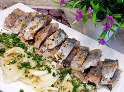 A very simple but delicious and spectacular snack. To pickle herring, you’ll need the fish divided into portions, bulb onion, and a marinade made of water and spices. It is important to prepare the herring in advance, as it should be marinated for at least 24 hours.