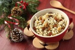 Members of the family and servants gather around the table. The meal begins with the Lord’s prayer and then a thanksgiving grace appropriate to the occasion. The first and indispensable dish is kutya, a preparation of cooked wheat dressed with honey, ground poppy seed, and sometimes chopped nuts. This ritual dish, of a very ancient origin, has survived hundreds of generations without losing its importance in the Christmas festivity. it starts the meal in a ceremonial manner. The head of the family raises the first spoonful of the kutya, invoking God’s grace, and greets the family with the traditional Christmas greet: “Khrystos Rodyvsya” (Christ is born), to which they all reply in unison: “Slavim Yoho!” (Let us glorify Him). Following this ritual everyone must partake of the kutya, if only but a spoonful. The exact meaning of kutya has been lost. Scholars of the folklore generally believe that originally it symbolized the spiritual clan unity of all living and deceased members. Agricultural prosperity may have been a secondary symbol.