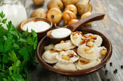 For Christmas Eve Ukrainians cook savory dumplings stuffed with cabbage. To make them you should knead simple dough using water, flour, and yeast. Then stuff each dumpling with the mixture of stewed cabbage and onions.